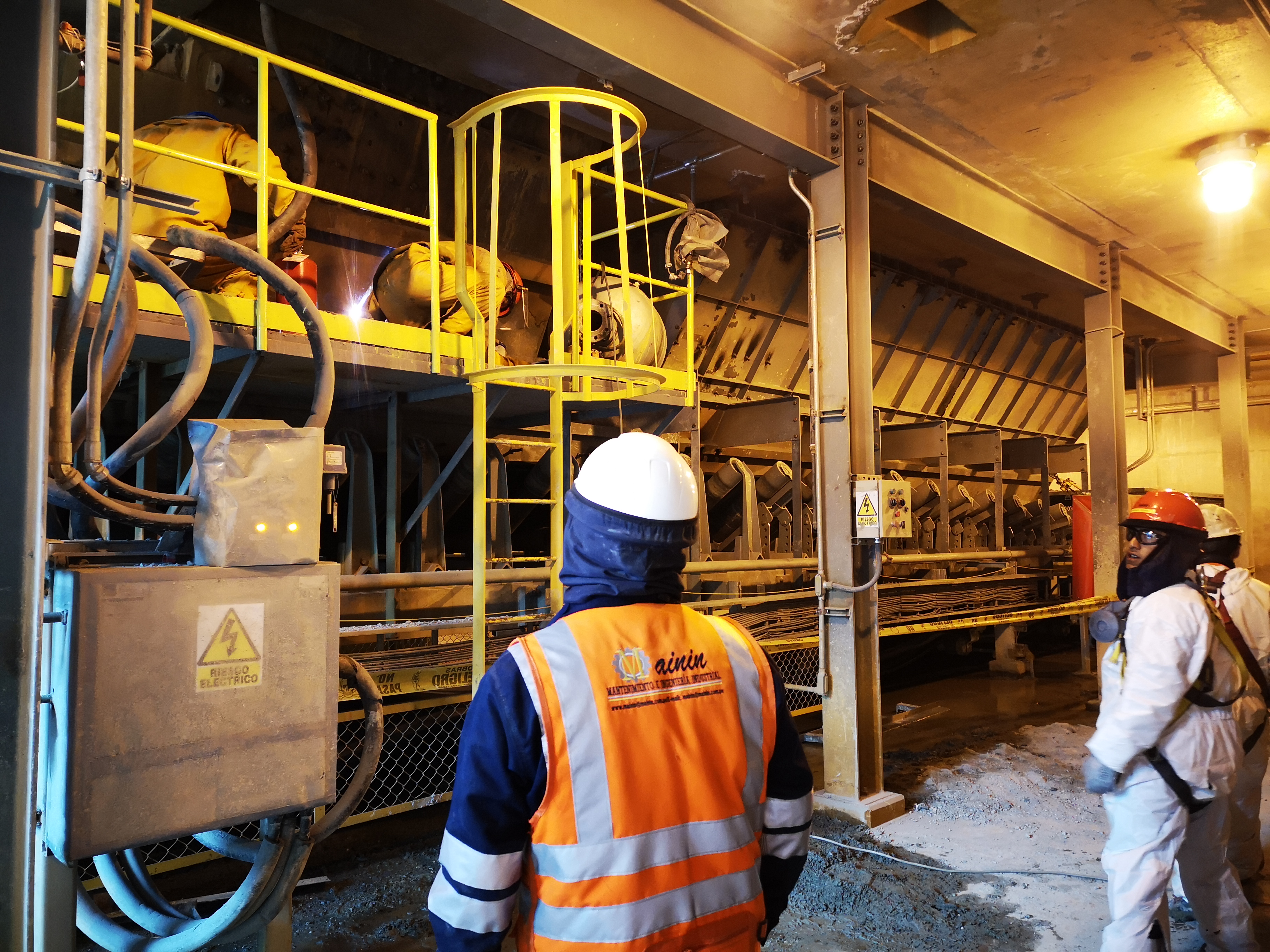 Soporte con personal para cambios de fajas transportadoras, polines, raspadores primarios, secundarios y terciarios, biplow, linatex laterales de arrastre.